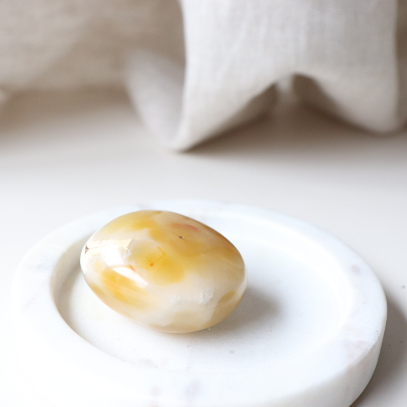Carnelian is a vibrant crystal of motivation, creativity, and courage. Known as a stone of vitality, it inspires confidence and helps overcome self-doubt, making it a powerful ally for new beginnings and bold pursuits. Its warm energy encourages passion, focus, and drive, while also supporting emotional balance. Carnelian is a meaningful crystal for those seeking motivation in work, creativity, or personal growth.